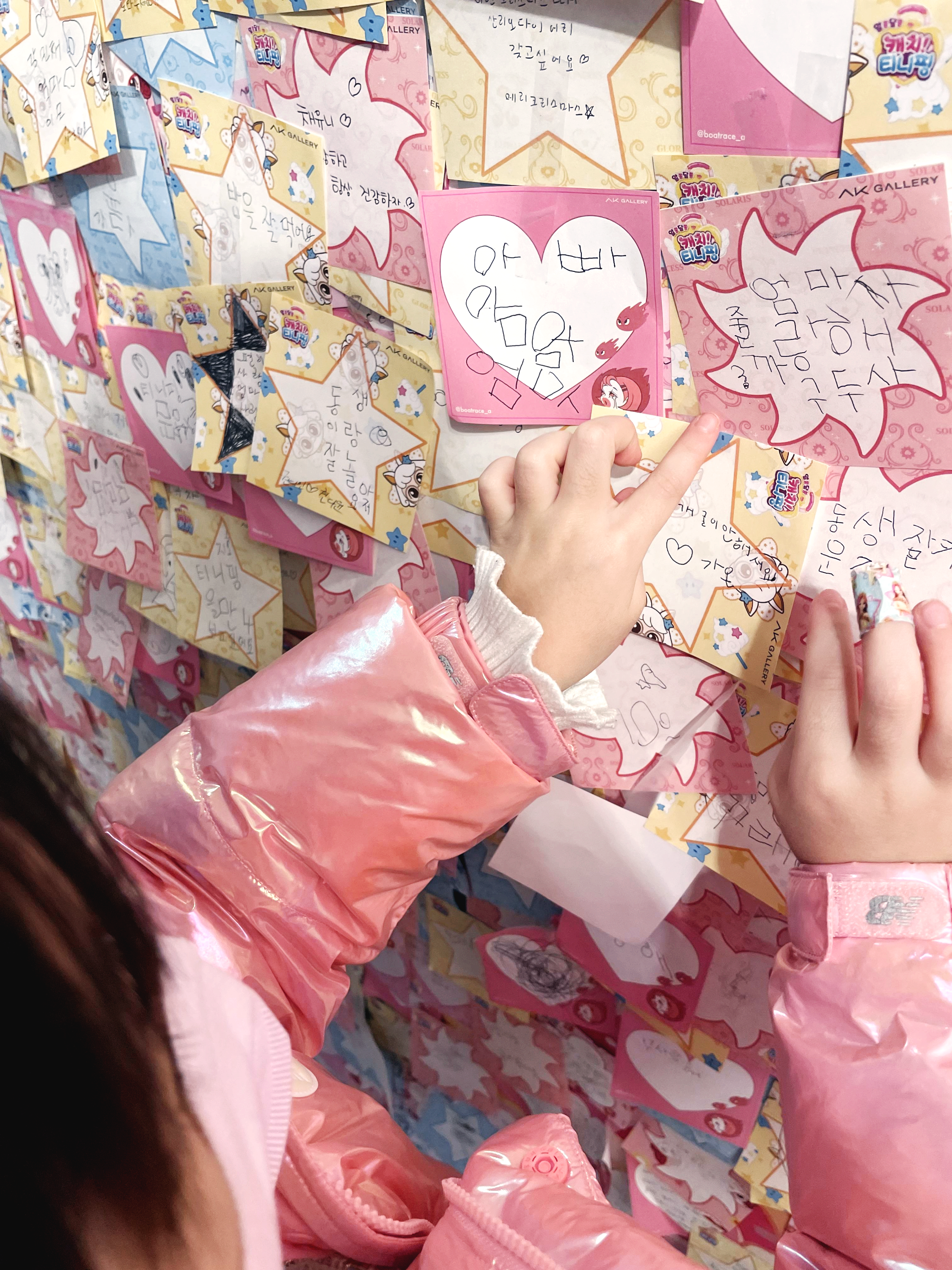 캐치 티니핑 무료 전시 | 수원 AK 플라자 | 연말 아이와 가볼만한 곳엄마의 정보/육아 정보 2022. 12. 21. 15:34반응형안녕하세요, 덥쑥입니다! 지난 주말 아이들과 캐치 티니핑 전시에 다녀왔어요.  캐치 티니핑 무료 전시회는 수원 AK플라자 6층 AK갤러리에서 12월 31일까지 열립니다.  6층에 가면 바닥에 전시장 가는 길이 표시되어 있어요. 화살표를 따라 쉽게 찾아갈 수 있답니다.  AK 갤러리 입구예요. 규모가 크지 않은 팝업 스토어 형태의 전시입니다. 입장료가 무료라 부담 없이 둘러볼 수 있어요^^   진행 중인 이벤트도 살펴보세요. 티니핑 인형, 장난감 등 몇 가지 기념품을 20% 할인해서 판매하고 있는데 퐁당핑 인형 구매하고 DIY 트리 모빌도 받았어요 ㅎㅎ   핑크핑크한 전시장에 티니핑들로 가득 꾸며져 있어서 캐치 티니핑 좋아하는 아이라면 정말 좋아할 거예요.    하츄핑 대형 풍선도 있고요! 예쁜 포토 스팟이 많아요 지금 보니 하츄핑 풍선 바람이 조금 빠져있네요?? 아이들이 많이 만져서 그런가 봐요      아이들이 직접 체험해볼 수 있는 것들이 많아요. 한 자리에 앉아서 시간 가는 줄 모르고 이것저것 갖고 놀더라고요~~ 체험 공간이 안내자 없이 자율적으로 운영되어서 사람 많은 주말엔 혼잡하기도 했어요.  각도에 따라 다르게 보이는 캐치 티니핑 캐릭터 소개!   티니핑 그림자 맞추기  티니핑 대형 퍼즐 맞추기  올해의 착한 일이 한쪽 벽에 가득 붙여져 있는데 삐뚤빼뚤 아이들 글씨 정말 사랑스럽지 않나요?ㅎㅎ 캐치 티니핑 매직포토 스티커사진 부스도 있어요. 아이 키에 맞춰 카메라가 낮게 달려있답니다. 1회 요금 4천 원! 부스에 커튼이 달려있지 않아 찍는 사람, 대기하는 사람 모두 조금 민망합니다 ㅎㅎ 화질도 그다지 좋지 않네요~~ 큰 기대 없이 재미 삼아 찍어보세요 ㅎㅎ 연말 아이와 캐치 티니핑 전시 데이트는 어떠신가요?💖 반응형'엄마의 정보 > 육아 정보' 카테고리의 다른 글백희나 그림책전 | 예술의전당 | 아이와 가볼만한 전시 | 요금 할인 주차 정보 (43) 2023.07.24 쉬운 낱말퍼즐 | 초등 저학년 어린이 | 낱말퀴즈 가로세로 십자말퍼즐 (25) 2023.04.10 이빨 요정 Tooth Fairy (20) 2023.01.16 초등학교 초등학생 입학 가방 고르는 법 (20) 2022.12.27 유아 수학 학습지 | 매스티안 팩토슐레 | 사고력수학 놀이수학 | 장단점 리뷰 (4) 2022.12.05 젖병 구멍 뚫기 젖꼭지 구멍 뚫는 방법 (3) 2022.11.04 4세 수학 워크북 | 재미있고 빠른 첫 수학 리뷰 (8) 2021.12.06 6살 보드게임 | 픽미업 (4) 2021.11.09