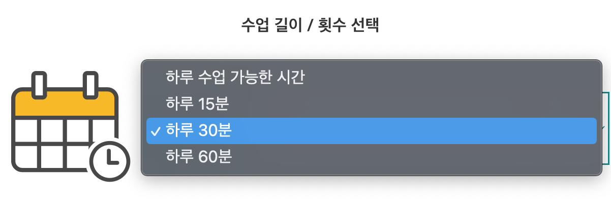 위에서 언급했듯 캠블리는 15분, 30분, 60분 3가지의 수업 시간을 선택할 수 있어요.