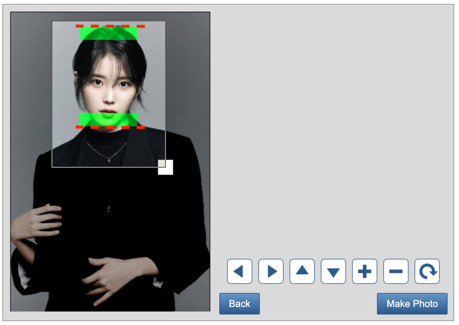 사진 규격 편집 사이트 idphoto4you Upload 버튼을 누르면 다음과 같은 페이지로 넘어갑니다.