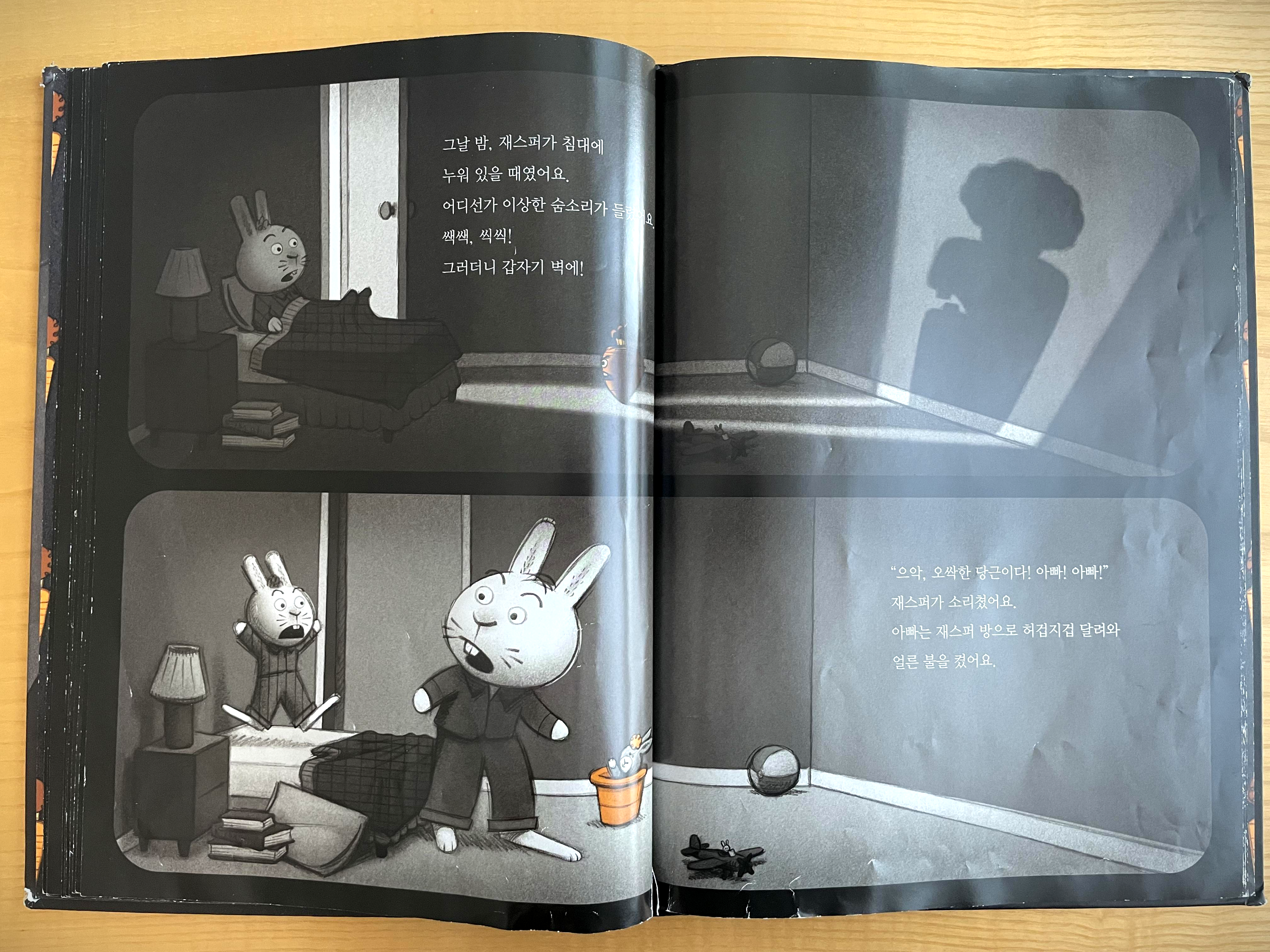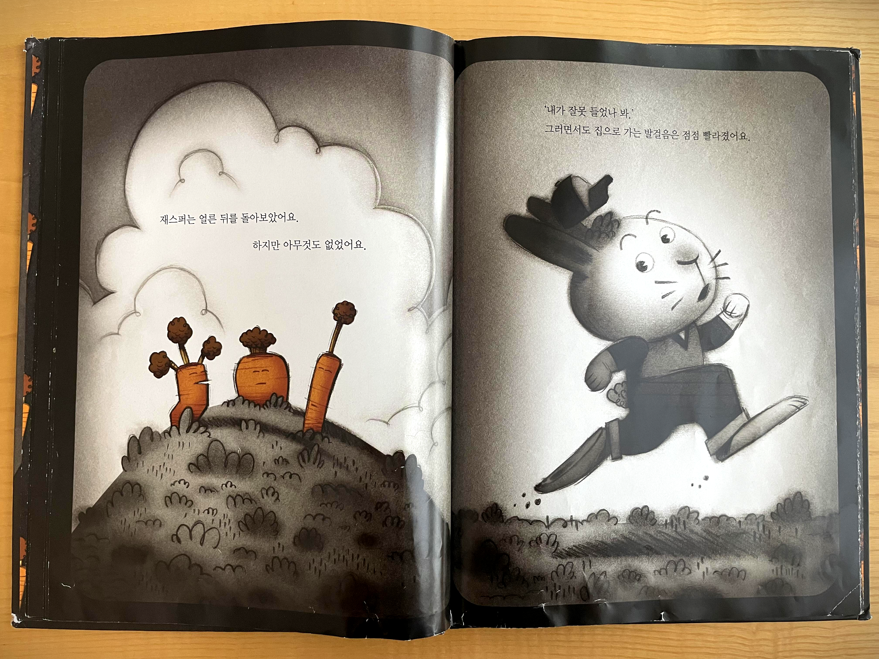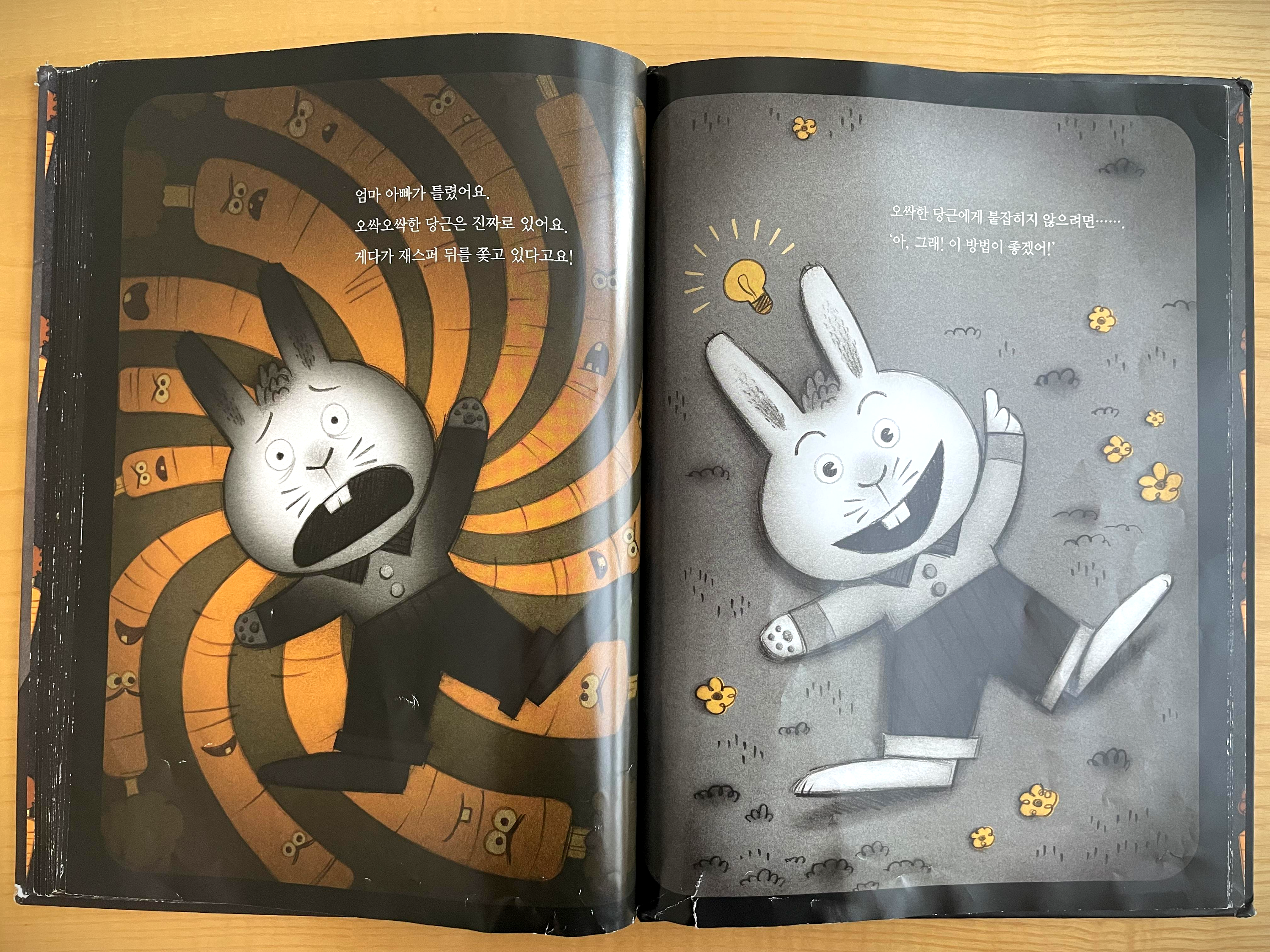 주인공 토끼 재스퍼가 당근을 먹는 장면으로 이야기가 시작됩니다.