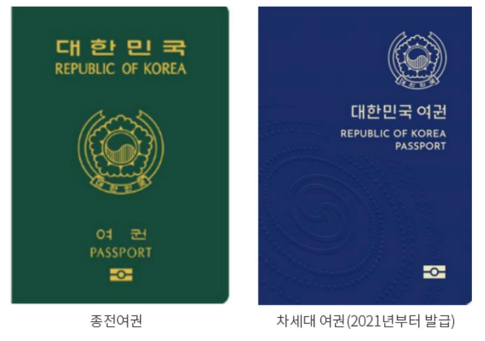일반여권은 종전 여권(녹색)과 차세대 여권(남색) 중 선택할 수 있습니다.