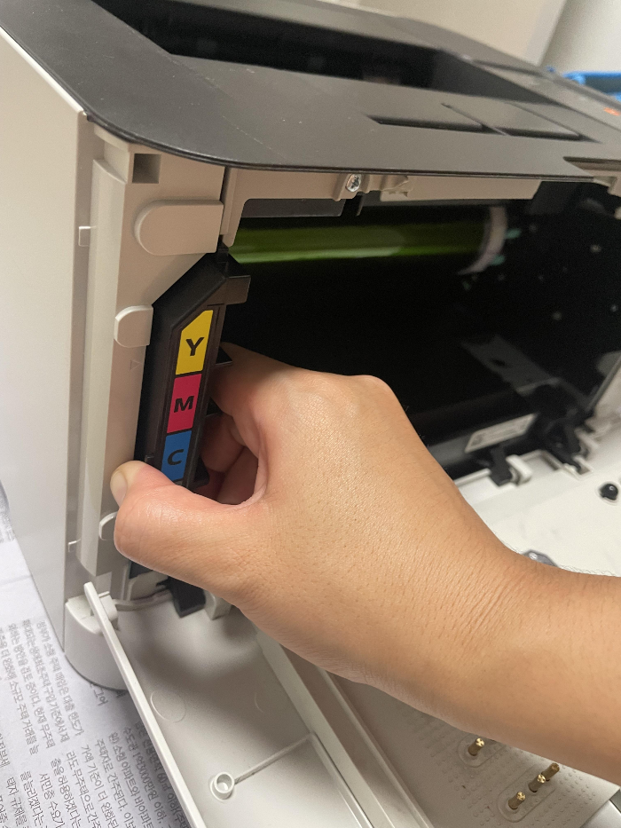 삼성 프린터 폐토너통 토너 카트리지를 모두 빼낸 후