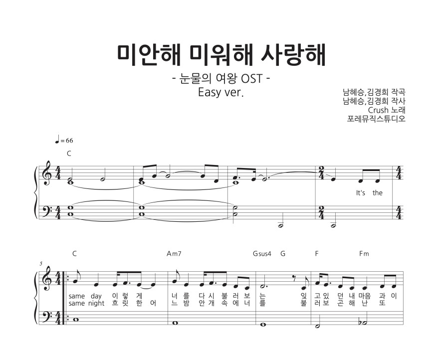 크러쉬 Crush - 미안해 미워해 사랑해 | 피아노 악보 | 원키 다장조 쉬운악보 멜로디 1단악보엄마의 클래식/악보 2024. 5. 18. 18:46반응형
