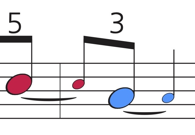 붙임줄로 연결된 음표입니다.