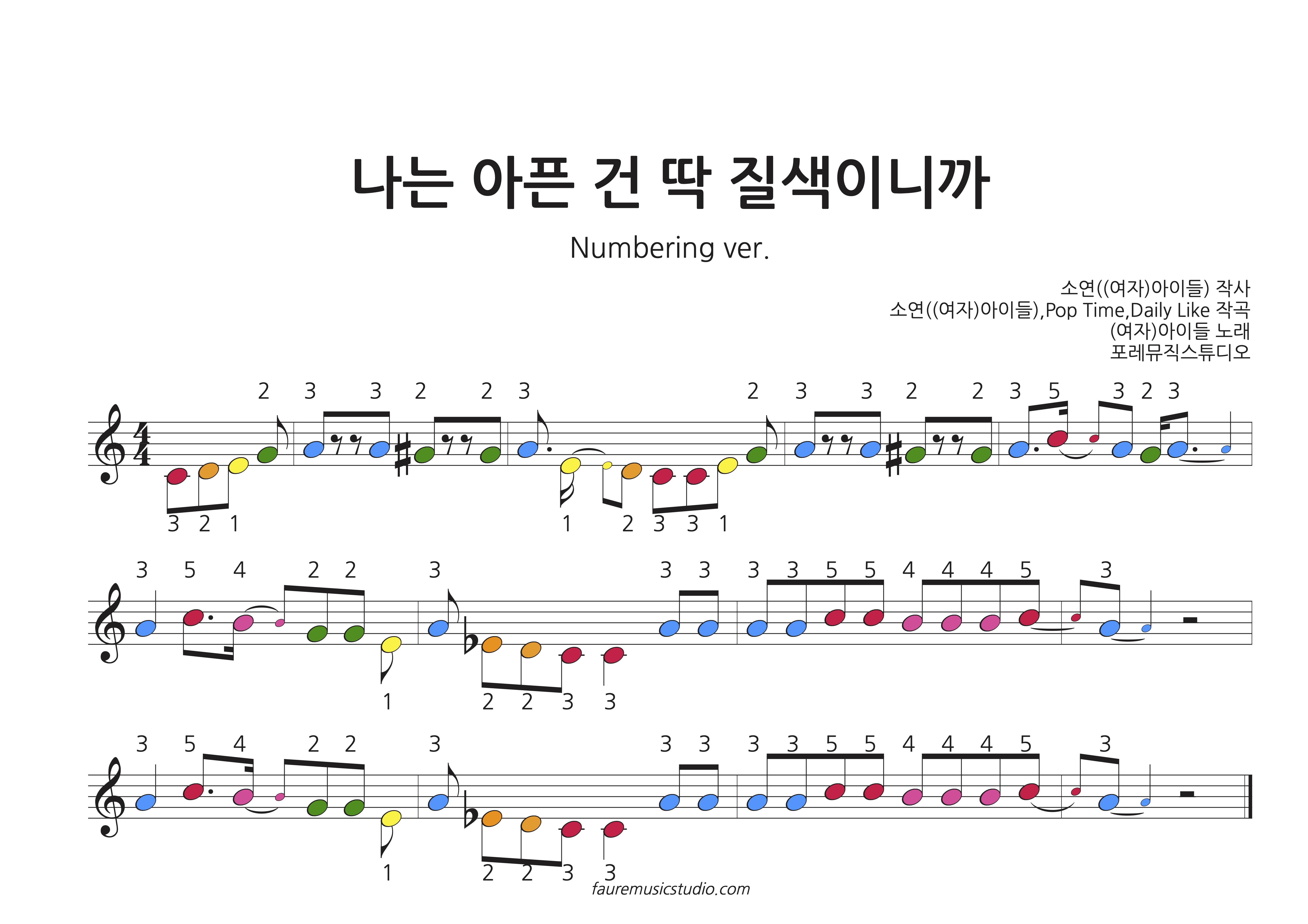 색깔 악보와 손가락 번호를 함께 보여드릴텐데요.