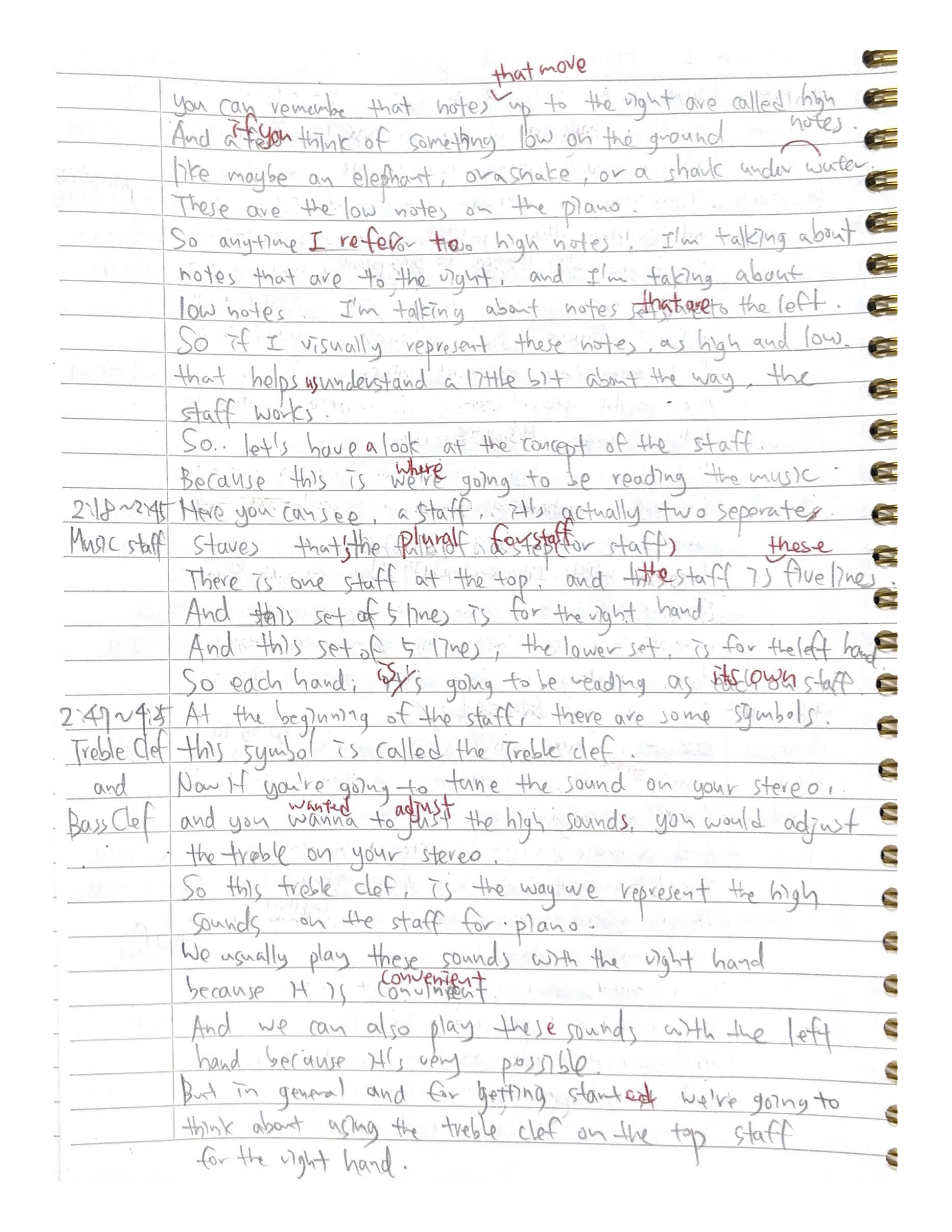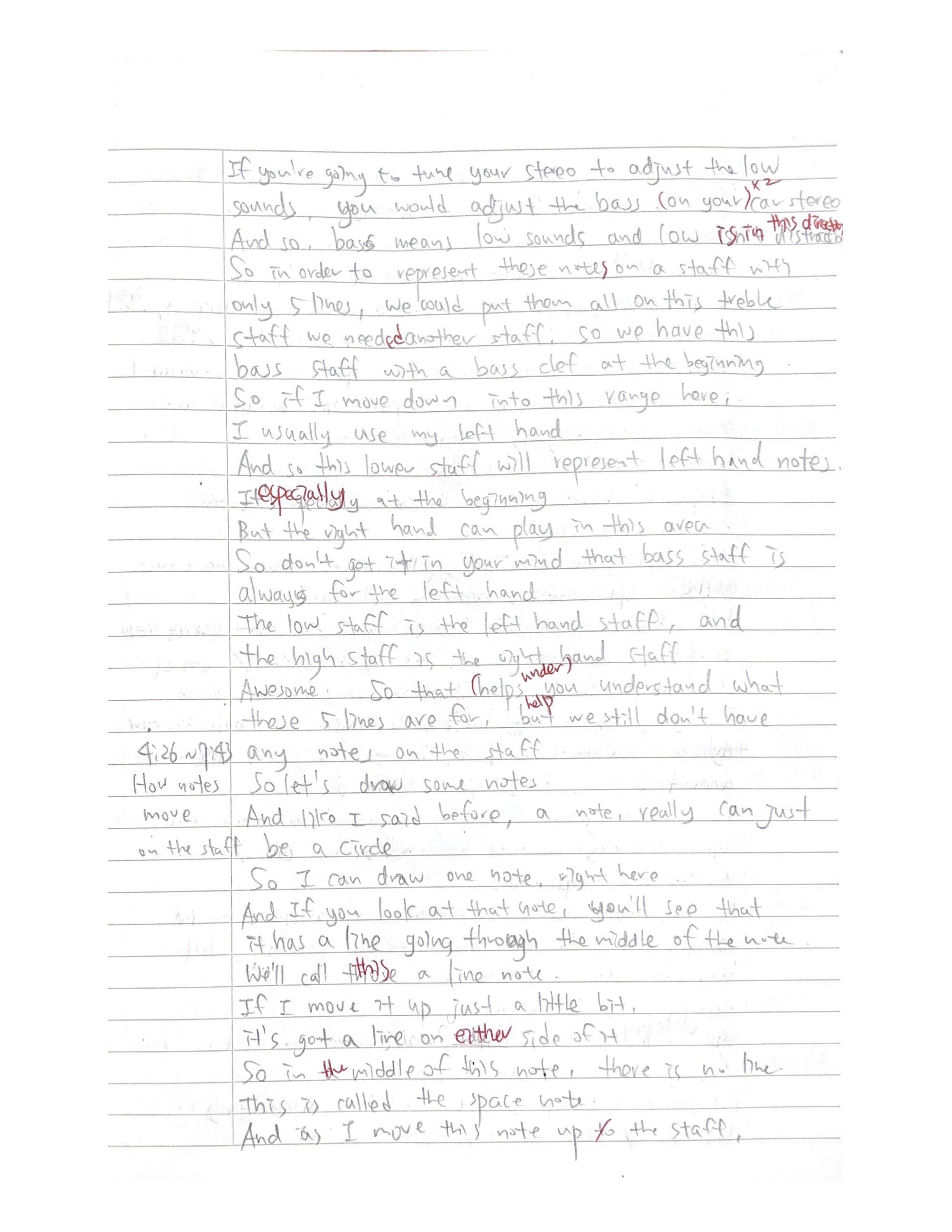 And so this lower staff will represent left-hand notes, especially at the beginning.