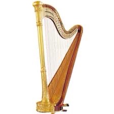왼쪽부터 바이올린, 비올라, 첼로, 더블베이스 또한 하프(Harp)도 이 현악기군에 속하는데요. 하프는 현을 손으로 뜯어 연주하며, 페달을 발로 밟아 음을 조절합니다.