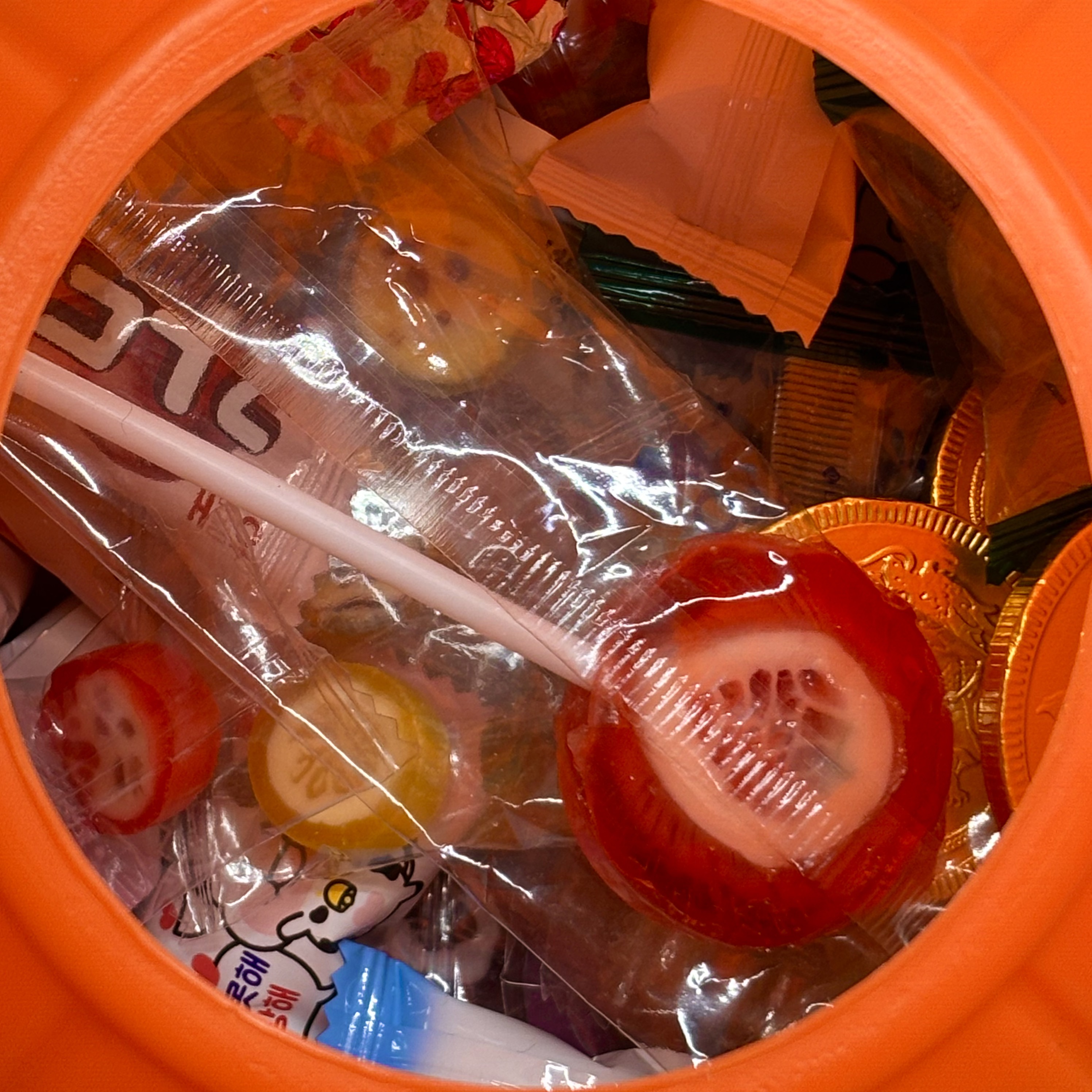 한 주먹 집는 만큼 가져가는 사탕 바구니도