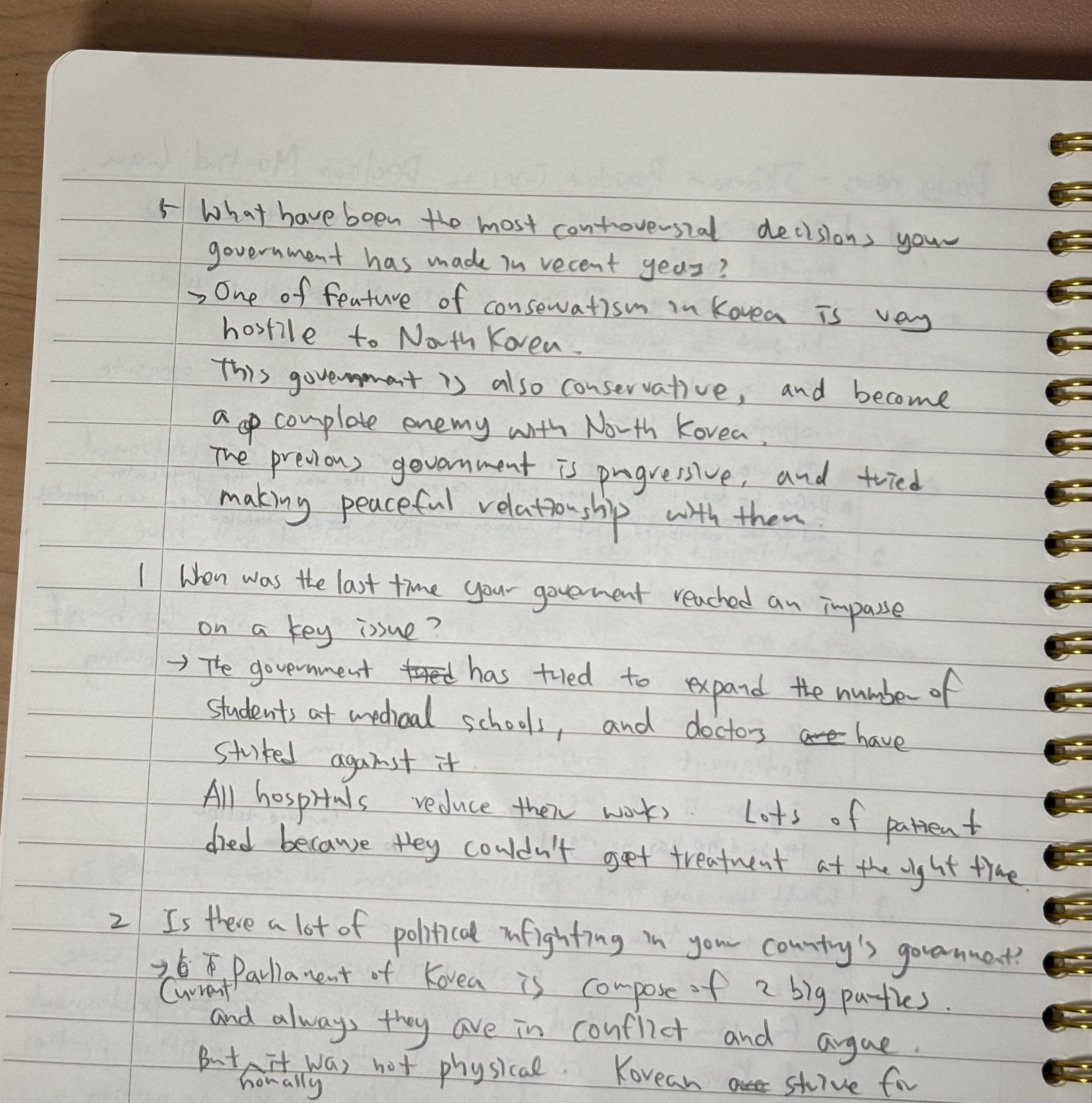 대화를 하며 튜터가 알려주는 내용도 필기를 합니다.