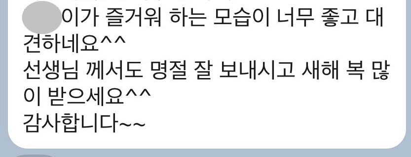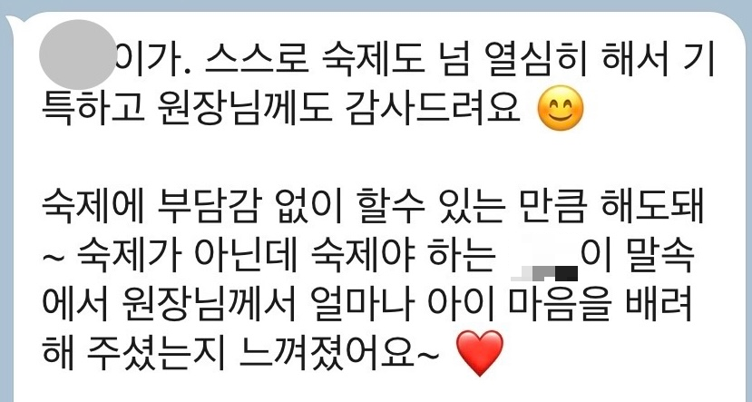 곁에서 지켜봐 주시는 학부모님들의 따뜻한 말씀도 무척 힘이 된답니다.