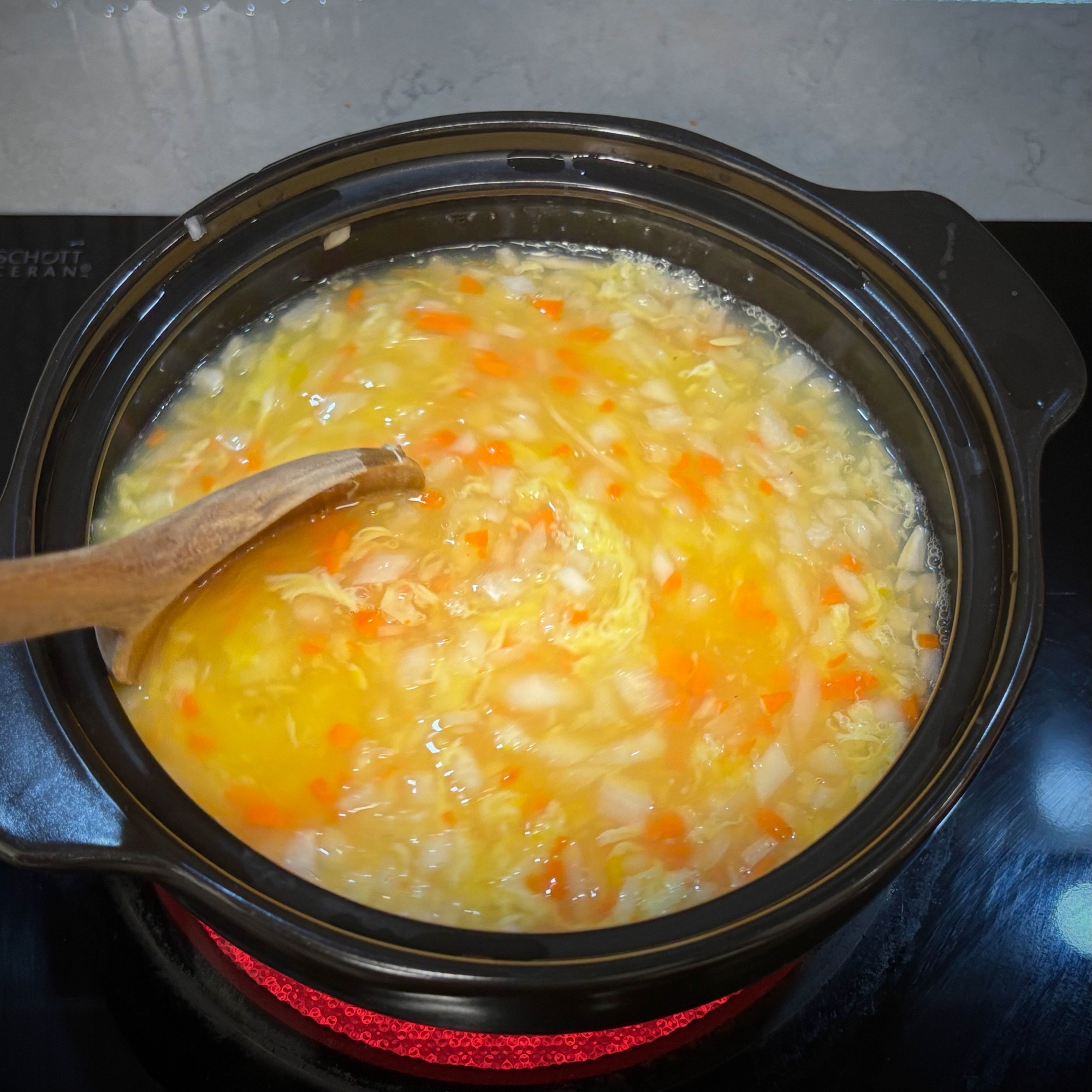 4. 뚝배기에 대파를 제외한 모든 재료를 넣고 센 불에서 살살 저어가며 익혀줍니다.
