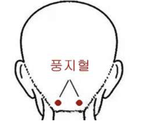 목 뒤, 귀 바로 아래 움푹 들어간 곳에 있는 혈자리입니다.