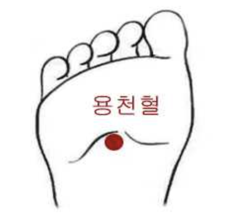 4. 용천(湧泉) – 발바닥 앞쪽 움푹한 곳