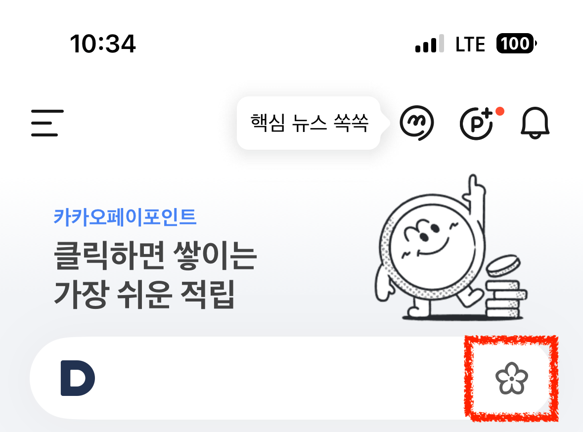 다음 앱 아이콘 1. 스마트폰으로 다음(Daum) 앱을 실행합니다.