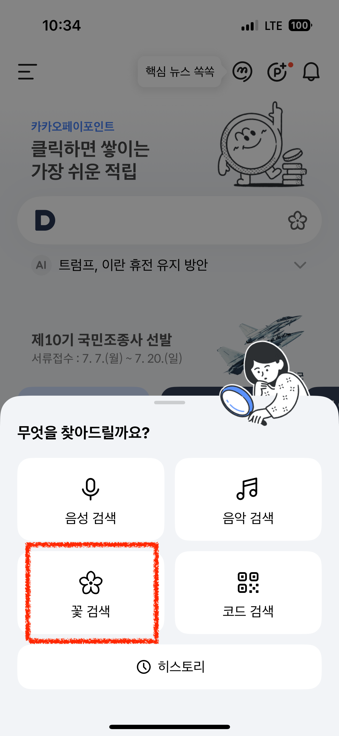 3. 4개의 검색 옵션 중 꽃 검색을 누릅니다.