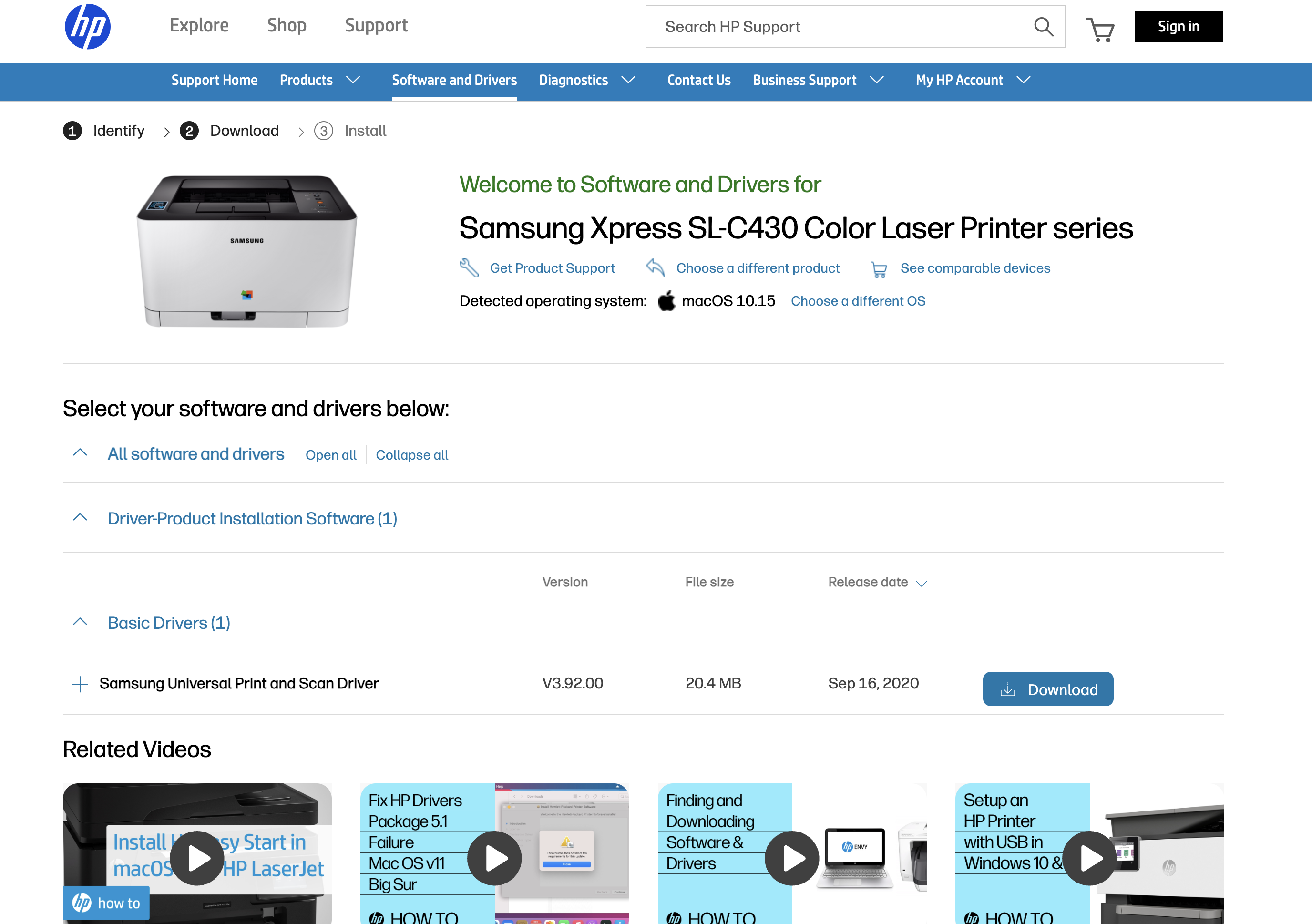 해결법은 바로, HP에서 제공하는 삼성 프린터 드라이버입니다.