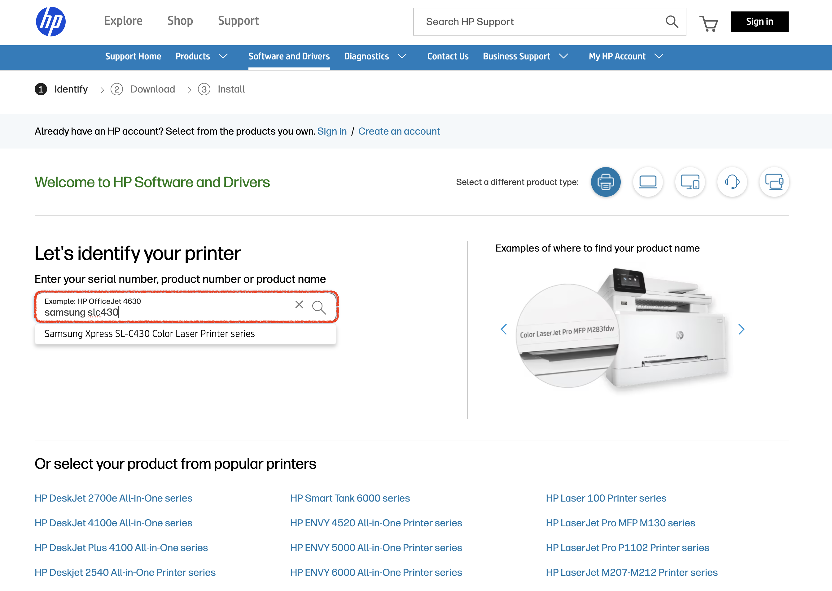 해결법은 바로, HP에서 제공하는 삼성 프린터 드라이버입니다.