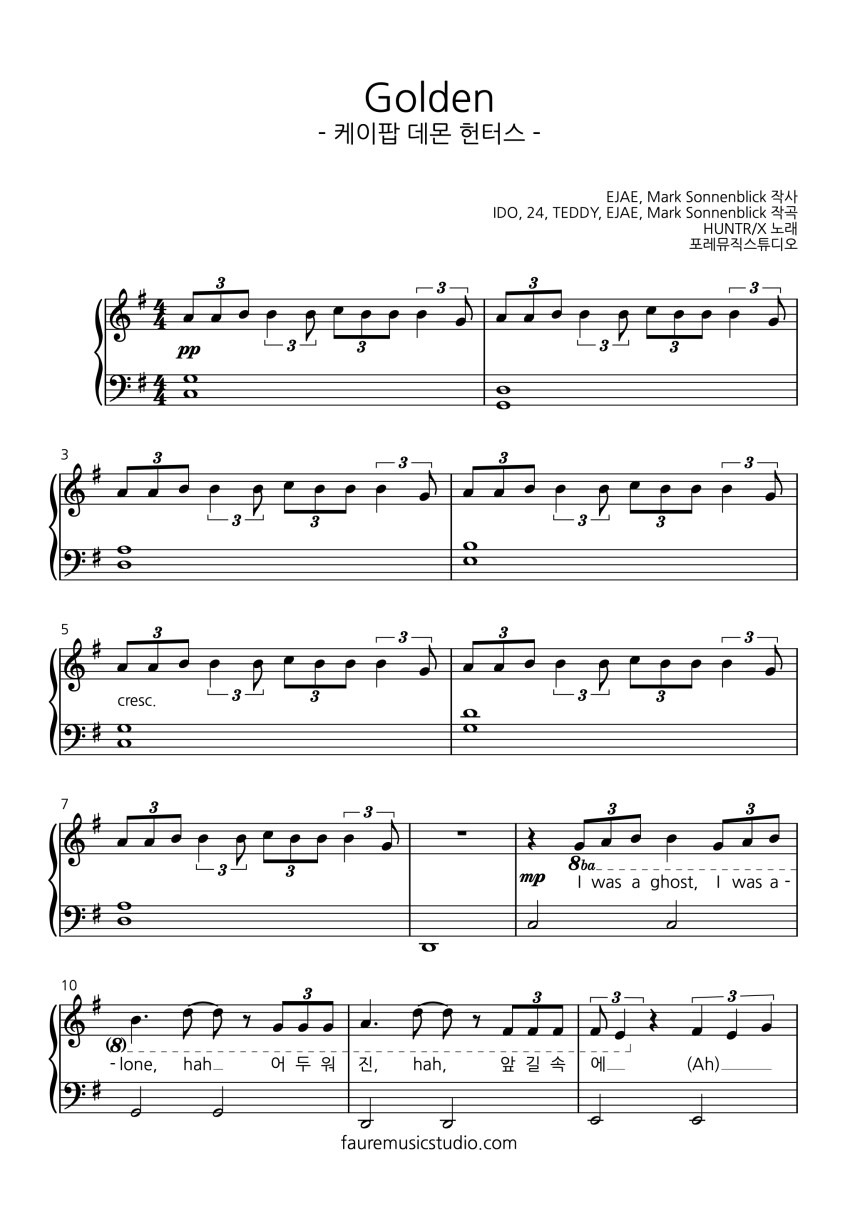 헌트릭스의 골든 피아노 악보입니다.