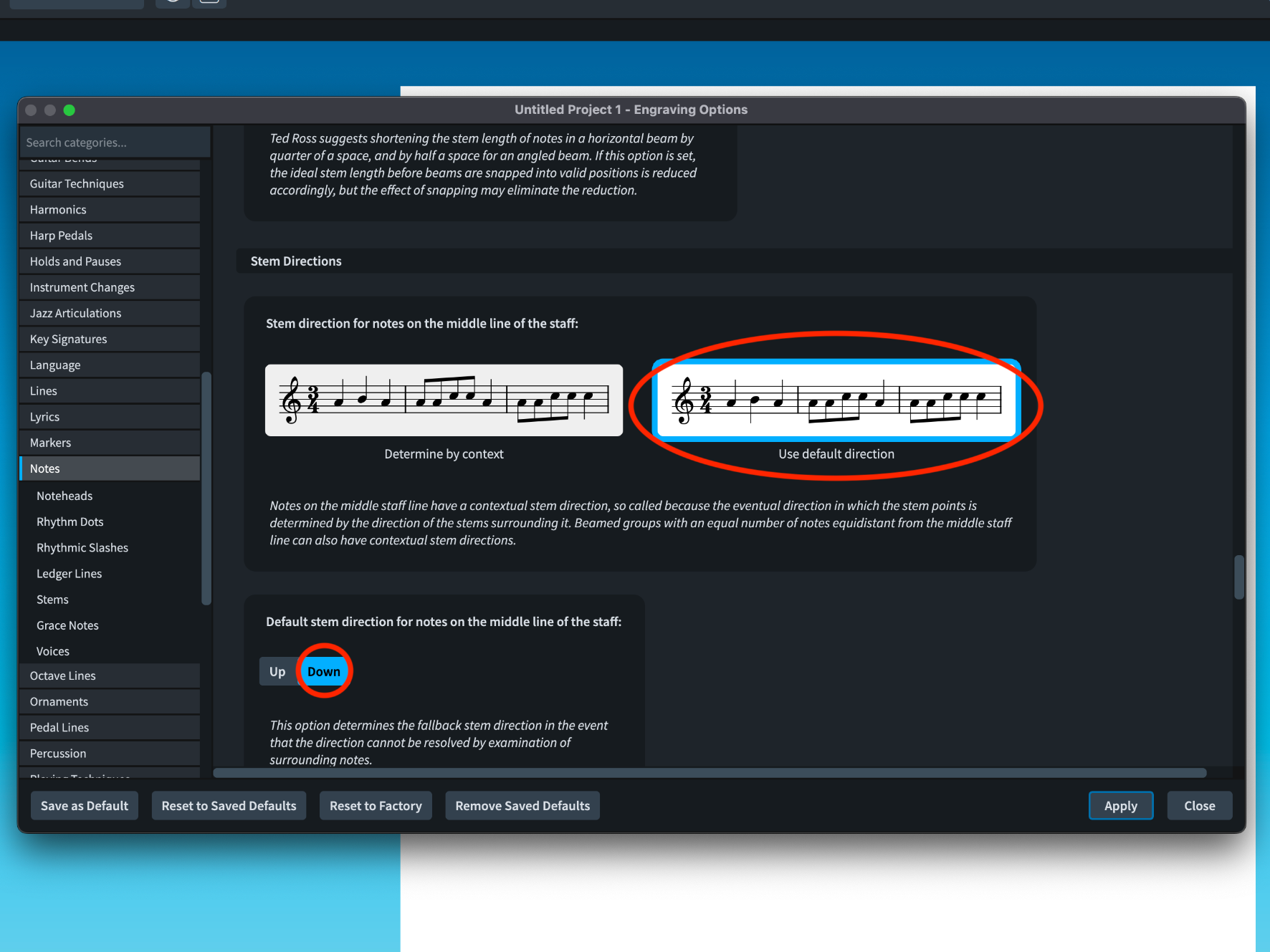 Notes 카테고리에서 Stem Direction 설정을 위와 같이 바꾸고