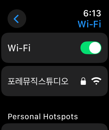 워치에서 설정앱 - 와이파이에 들어가 아이폰, 맥북/아이맥과 일치한 와이파이로 선택해주세요.