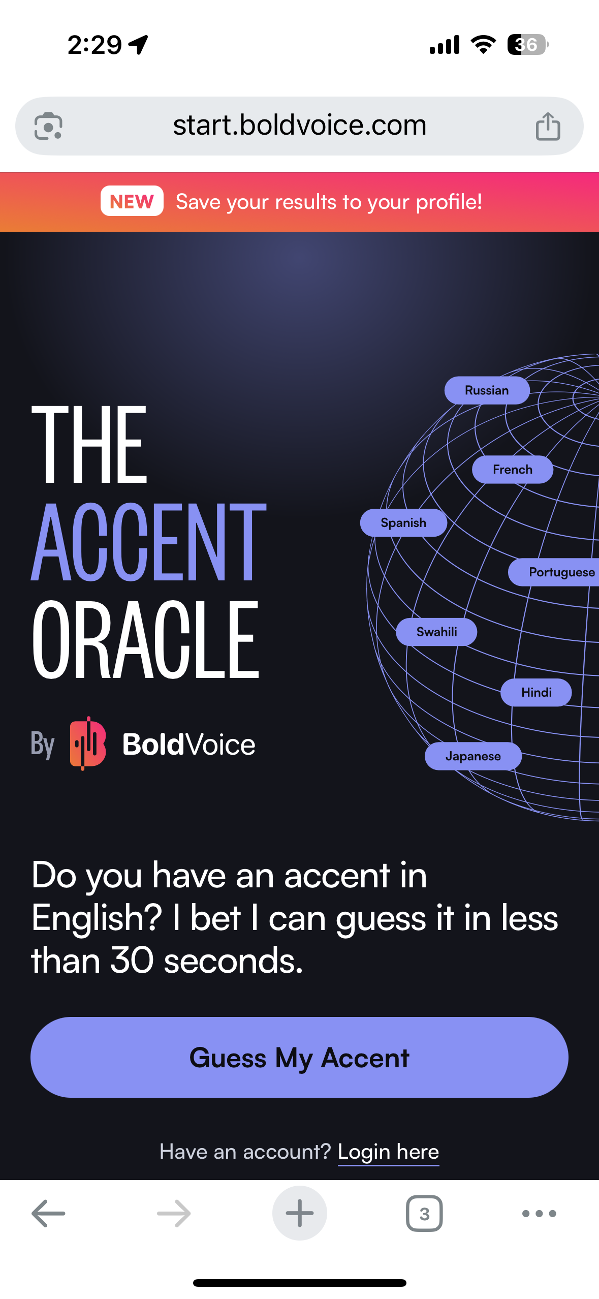 Guess My Accent 버튼을 누르세요.