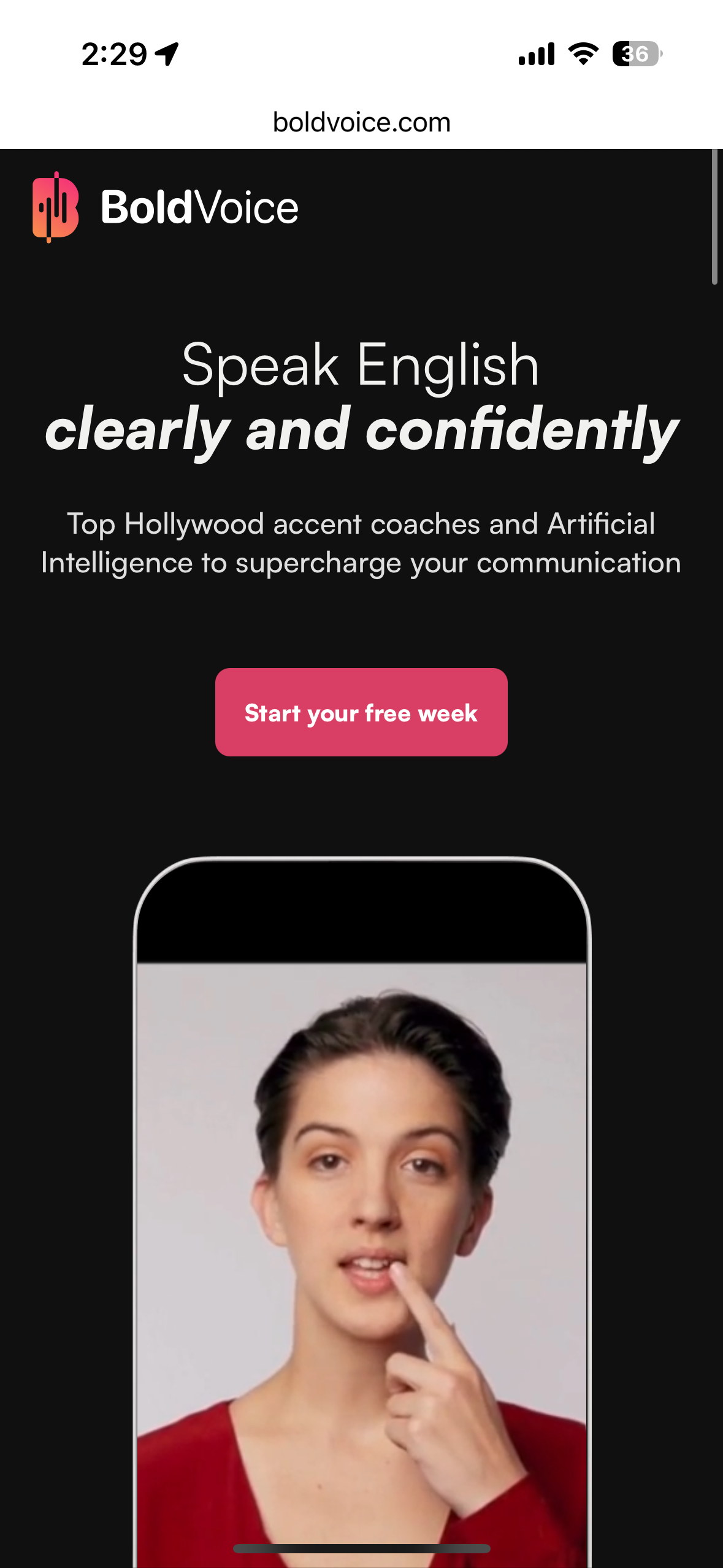 미국의 영어 회화 튜터링 업체 볼드보이스(https://www.boldvoice.com/) 사이트입니다.