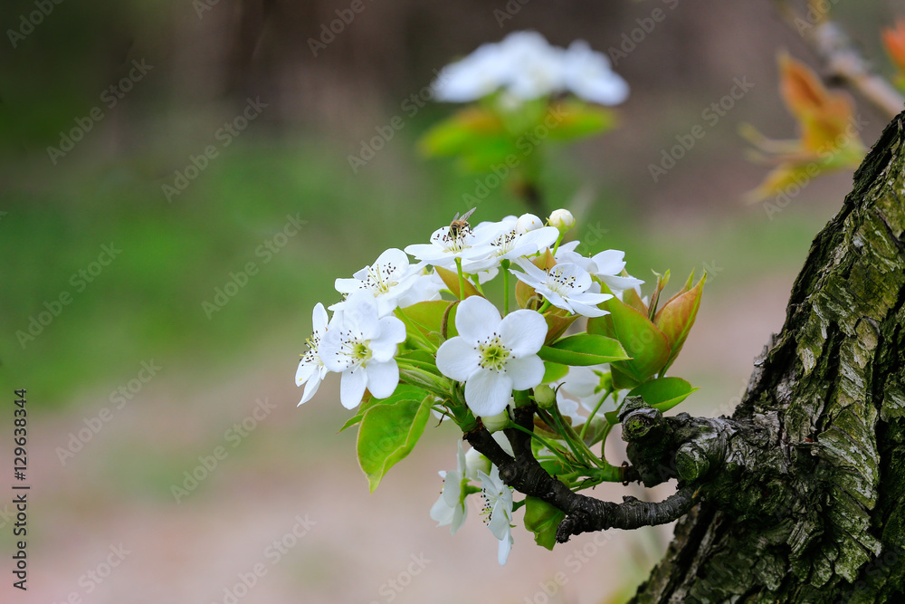 벚꽃보다 가지에 더 가까이 붙어 있고, 퍼지는 느낌이 덜합니다.배꽃(배나무)
