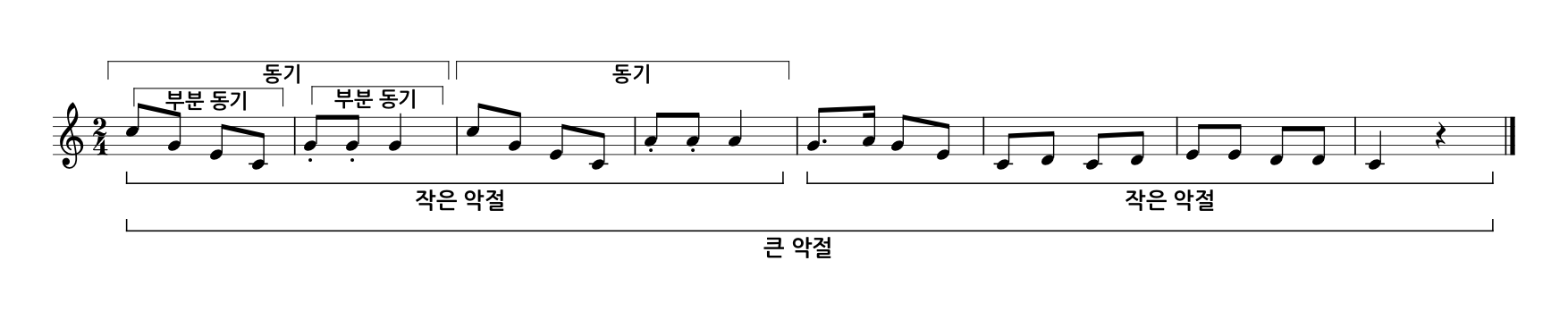 악곡을 구성하는 요소에는 동기, 작은악절, 큰악절 등이 있습니다.