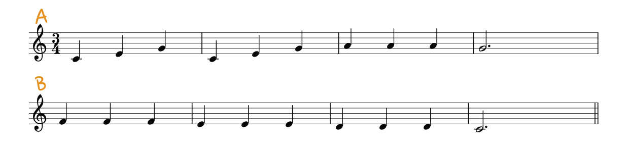 한도막 형식 - 동요 <똑같아요> 두도막 형식 (Two part form, Binary form)