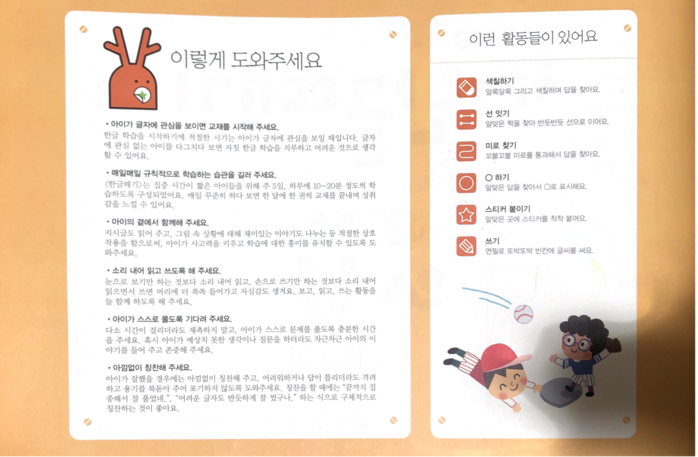 아이의 흥미를 유지하며 차근차근 학습하기 위해 기탄 한글 떼기 시리즈를 구매했습니다.