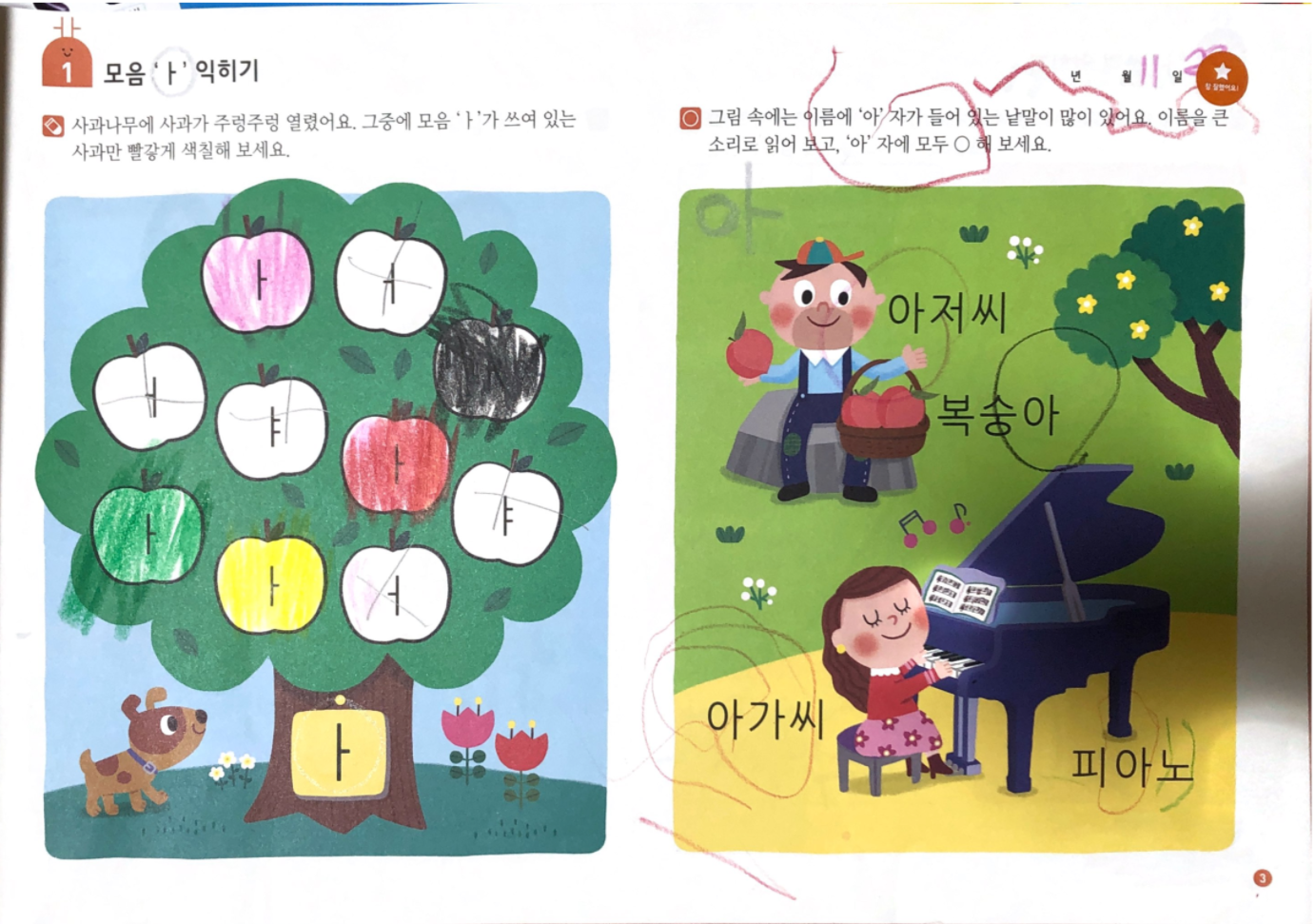 가끔 아이 스스로 <한글 떼기>를 꺼내 조금씩 풀고 있습니다.