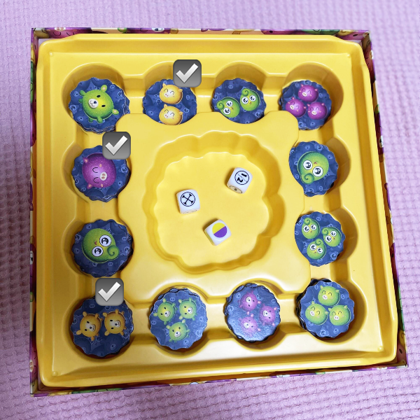혼자서 천천히 주사위를 굴리고 정답 타일을 찍어오는 방법도 있어요.