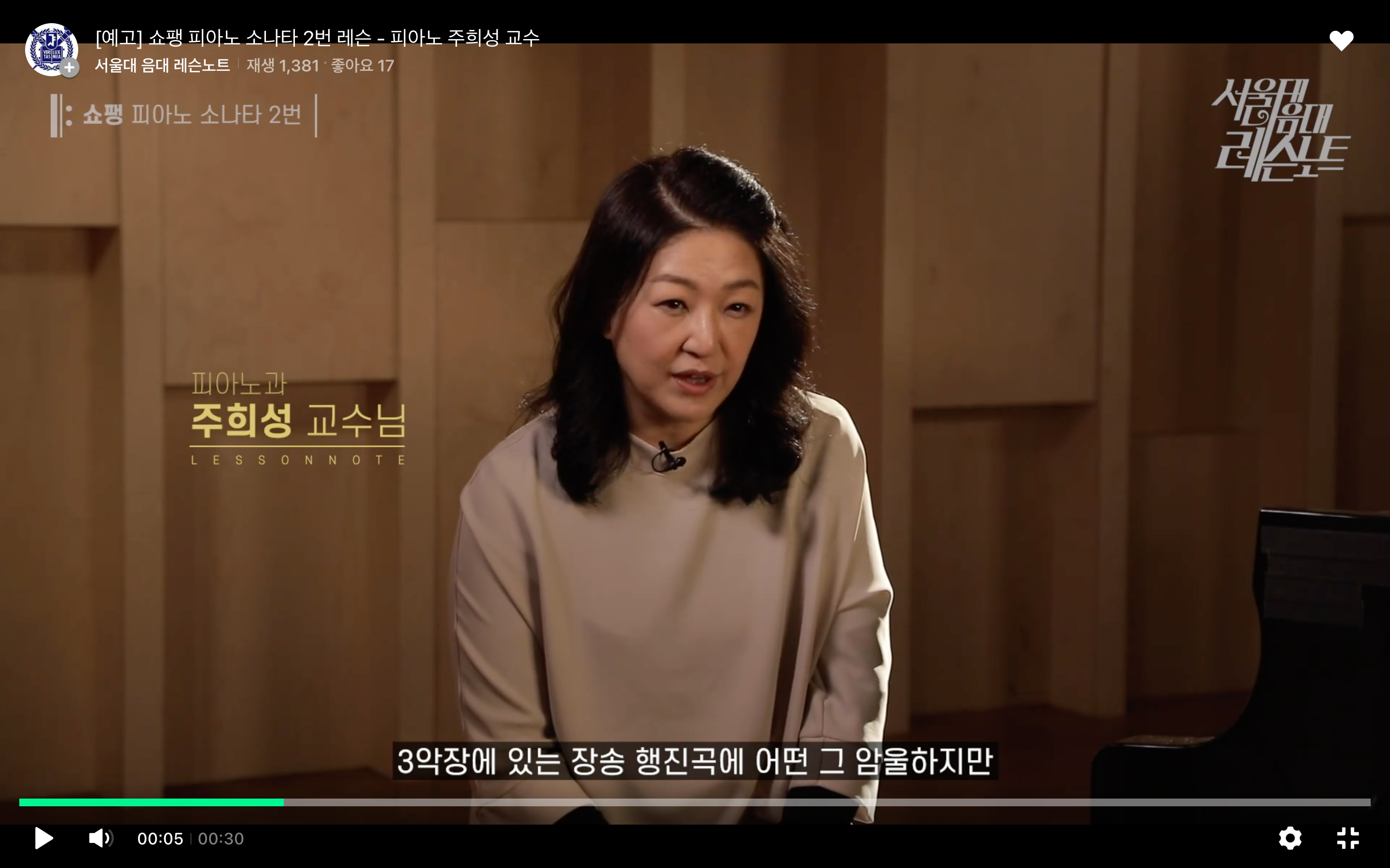 서울대 음대의 레슨 풀영상을 제공하는데요.