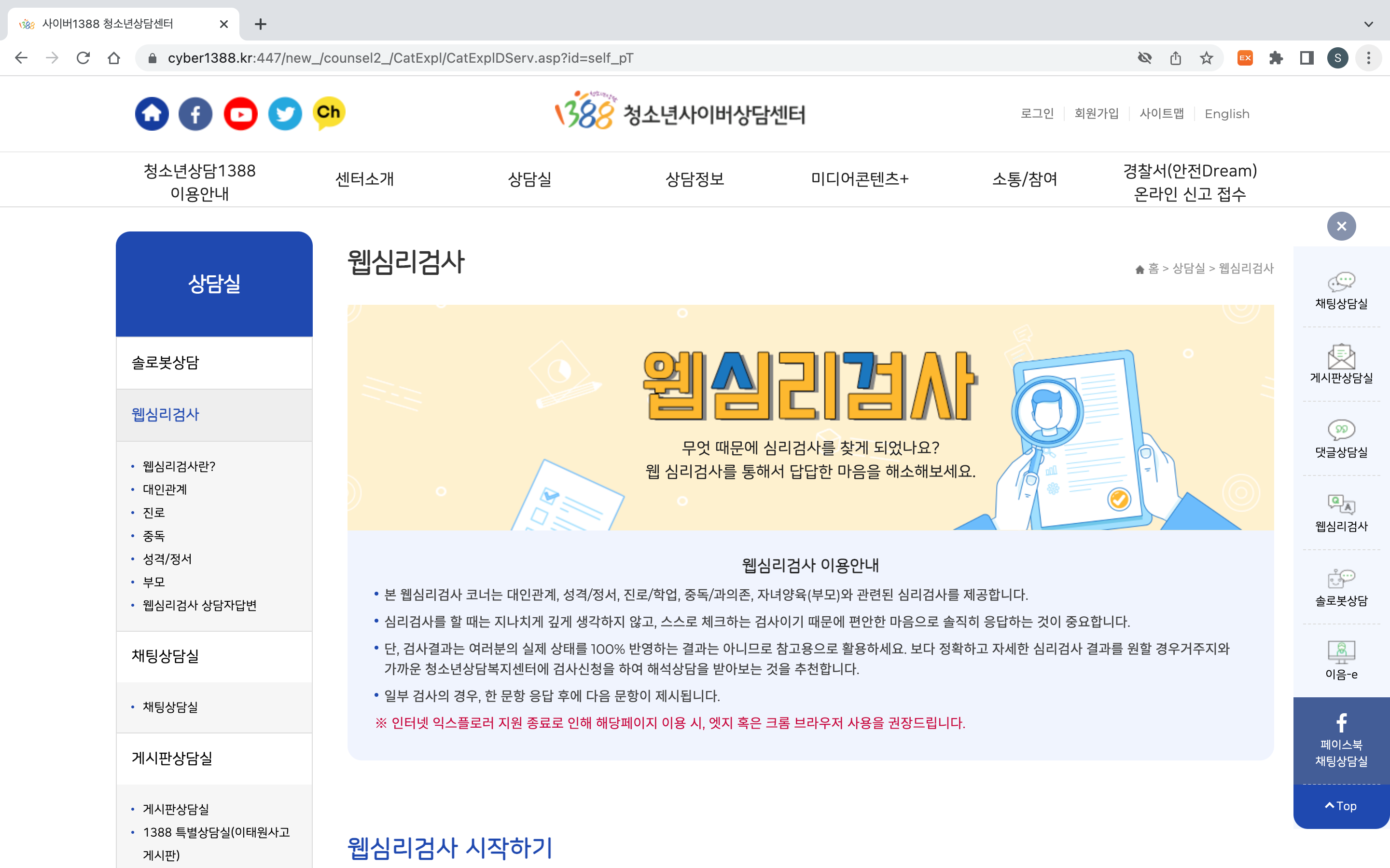 상단탭 상담실 > 웹심리검사