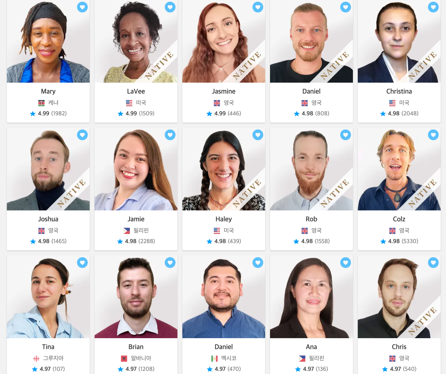 저와 자주 대화를 나누는 튜터들이에요 ㅎㅎ