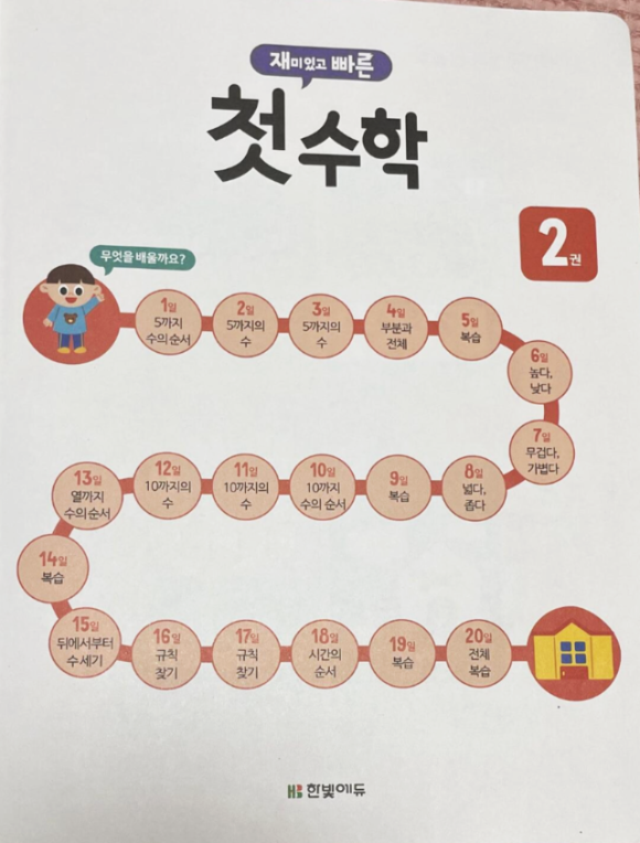 재미있고 빠른 첫 수학 2권 내용은 위와 같아요.